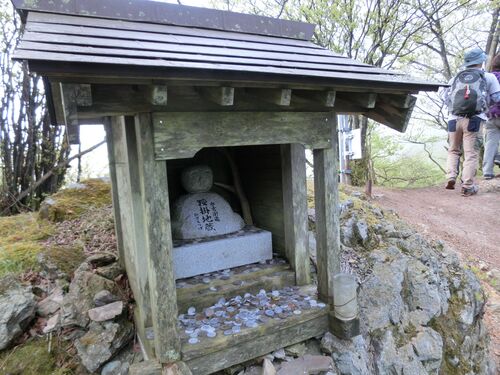 登山口から稜線にあがると鞍掛峠につきます そこには写真のお地蔵さんが鎮座しています 鞍掛峠のお地蔵さん かたくりの花がまだ残っていました かたくりの花 途中、ガスの中に入ったので幻想的な雰囲気になりました 幻想 鈴北岳まで登りました ここまでくる…